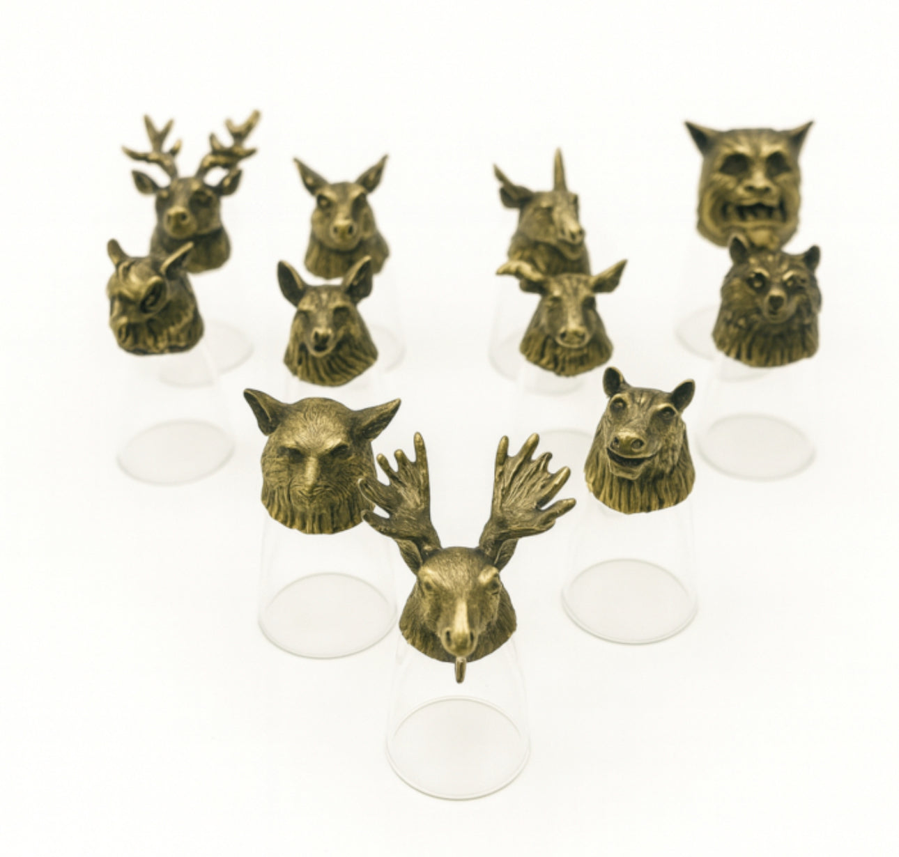 Kiekviena 25 ml stiklinė yra rankų darbo, pagaminta iš skaidraus stiklo su tvirtu žalvario pagrindu, iškalta į detalius gyvūnų ar mitinius raštus. Apverstas aukštyn kojomis, kiekvienas gabalėlis virsta dekoratyvine figūrėle – nuo elnio ar lokio iki drakono ar avino, – o ausys, ragai ar sparnai naudojimo metu sudaro puikiai subalansuotą pagrindą.