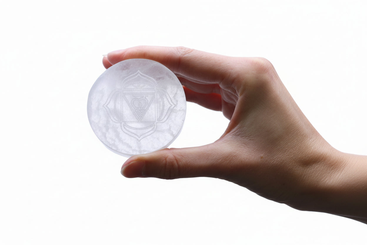 Sukurkite ramybės oazę su šiuo išskirtiniu 7 rankų darbo selenito padėkliukų rinkiniu. Kiekvienas padėkliukas papuoštas unikaliu čakros simboliu, padedančiu sutelkti dėmesį į specifinius energetinius centrus – nuo šaknies iki karūnos.