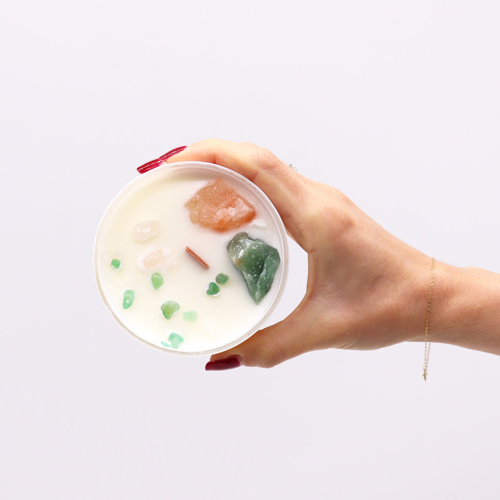 Pagaminta iš tikrų brangakmenių, natūralaus sojų vaško, specialiai sumaišytų kvepalų ir stebuklingų medinių dagčių.