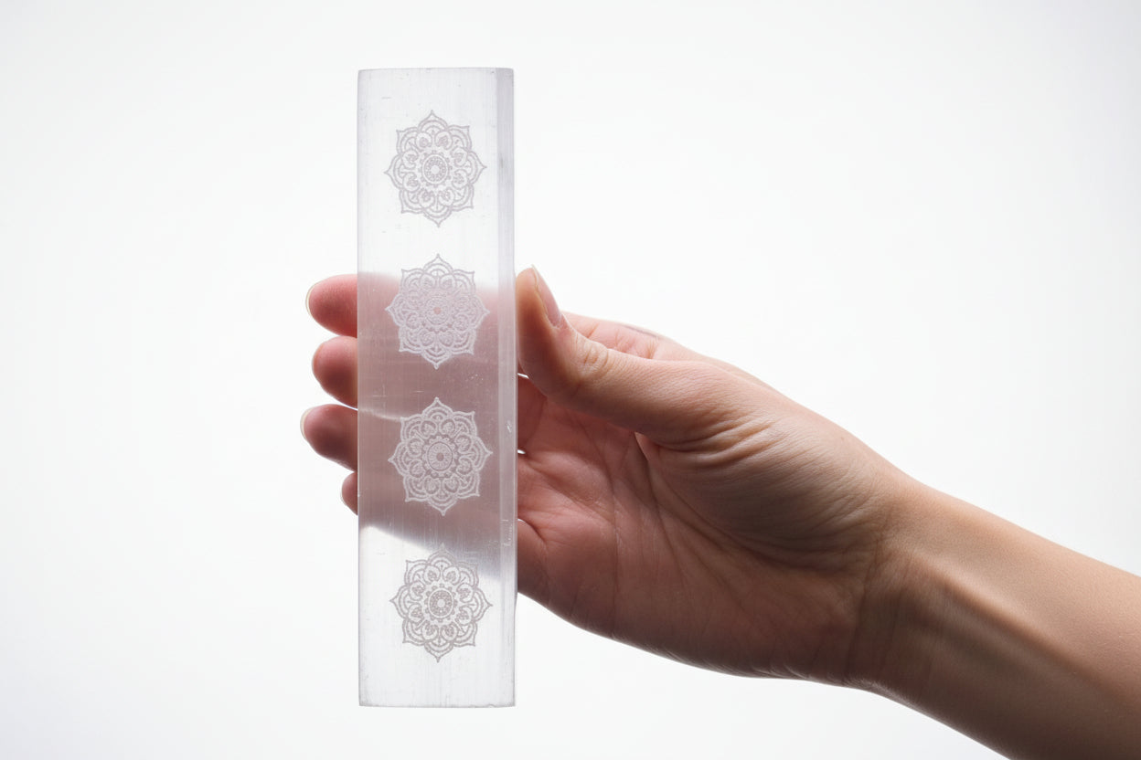 Kristalų „įkrovimo stotelė“: Selenitas turi unikalią savybę valyti kitus akmenis. Tiesiog padėkite savo papuošalus ar kristalus ant lėkštutės nakčiai, kad jie vėl „atgytų“.