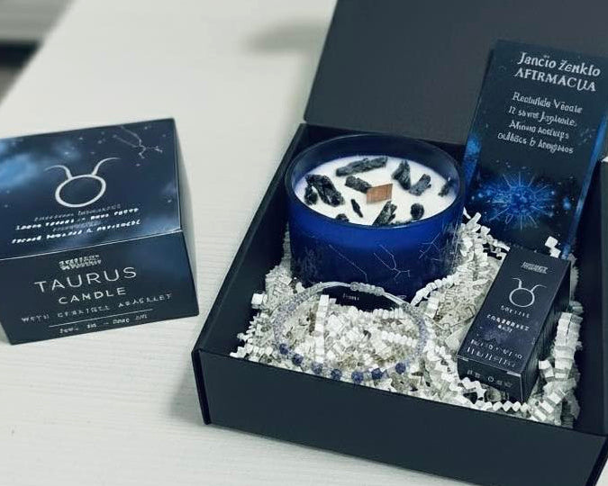 Šis magiškas rinkinys idealiai tinka savęs priežiūrai, meditacijai arba kaip prasminga dovana Jaučiui. Įneškite Jaučio stabilumo ir ramybės energiją į savo erdvę.
