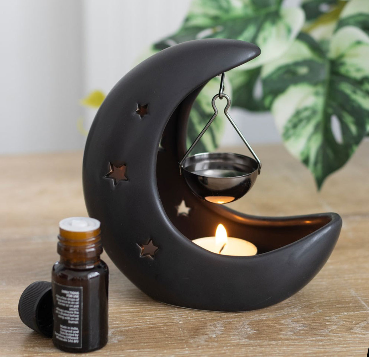Šis žavus juodo pusmėnulio formos aliejaus degiklis sukurtas tam, kad namai būtų papuošti svajinga, magiška vidurnakčio atmosfera. Pripildykite pakabinamą dubenėlį mistiškai kvepiančiu kvapniu aliejumi ir stebėkite, kaip žvaigždės detalės skleis dangišką švytėjimą, suteikdamos jūsų erdvei eterinio žavesio.