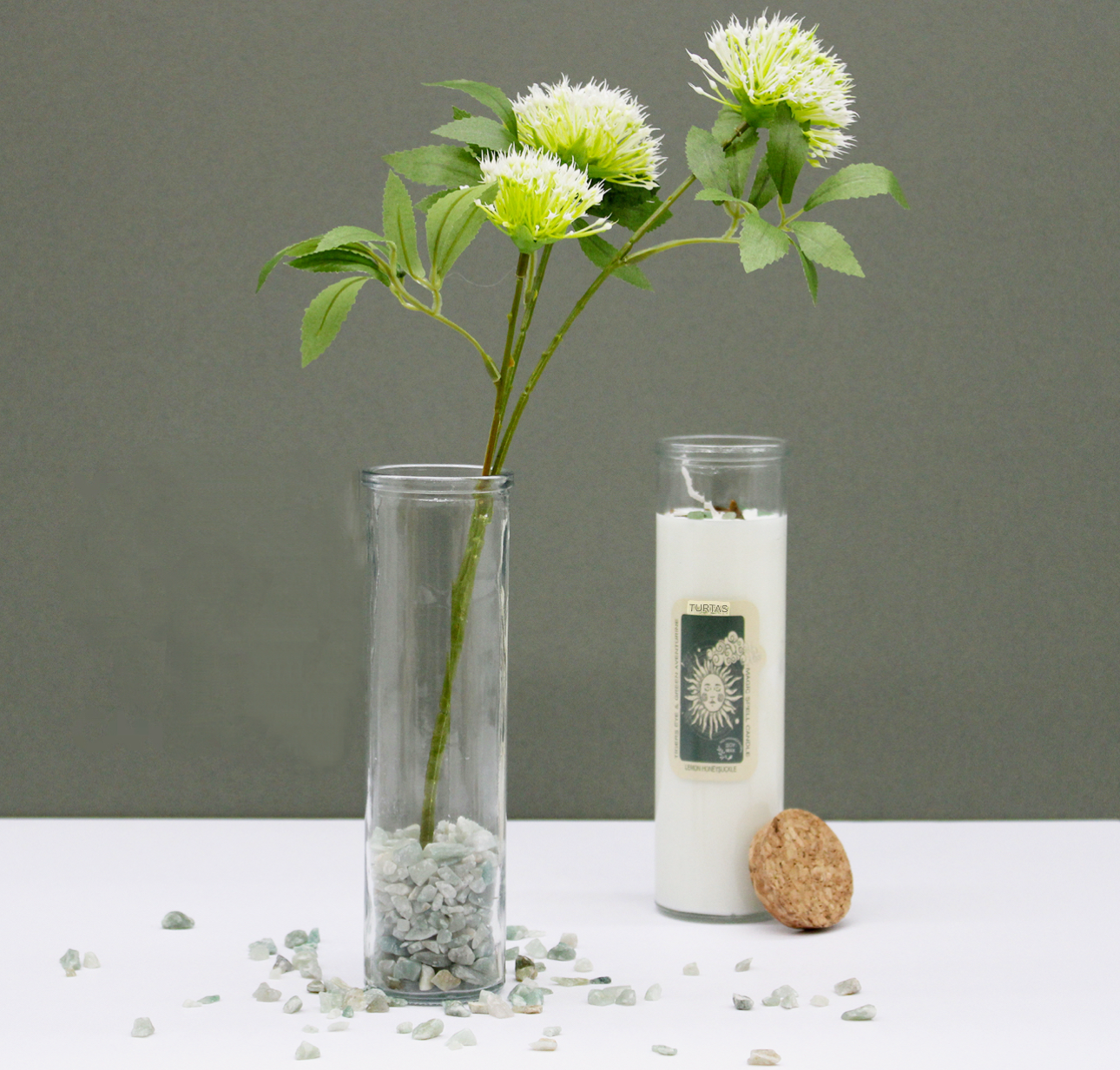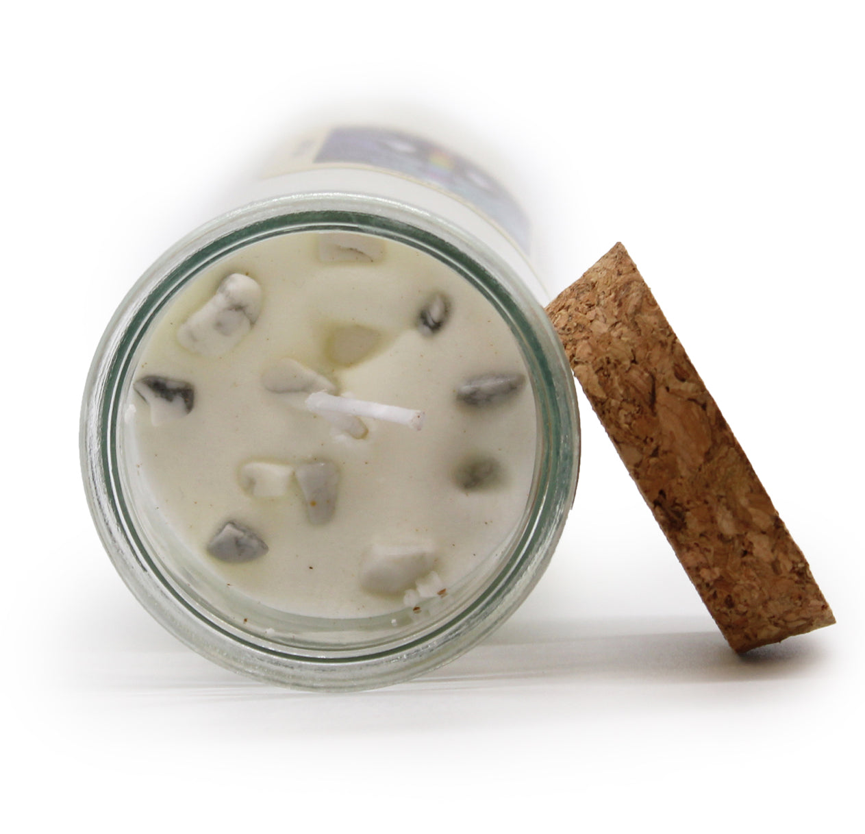 Žvakėje rasite Baltojo Jaspiu kristalą – tai tyrumo, ramybės ir švelnios apsaugos akmuo. Jo energija: