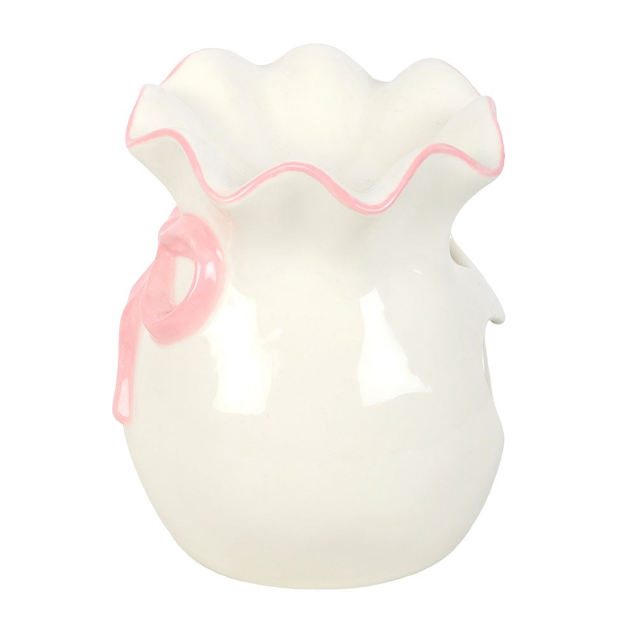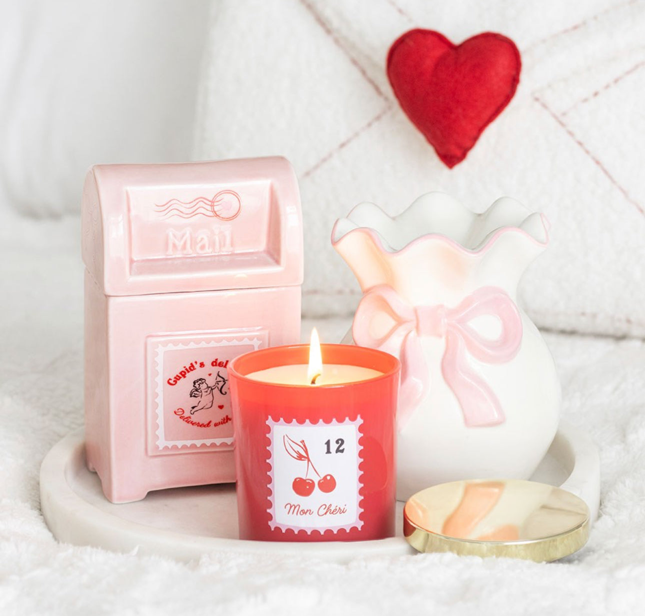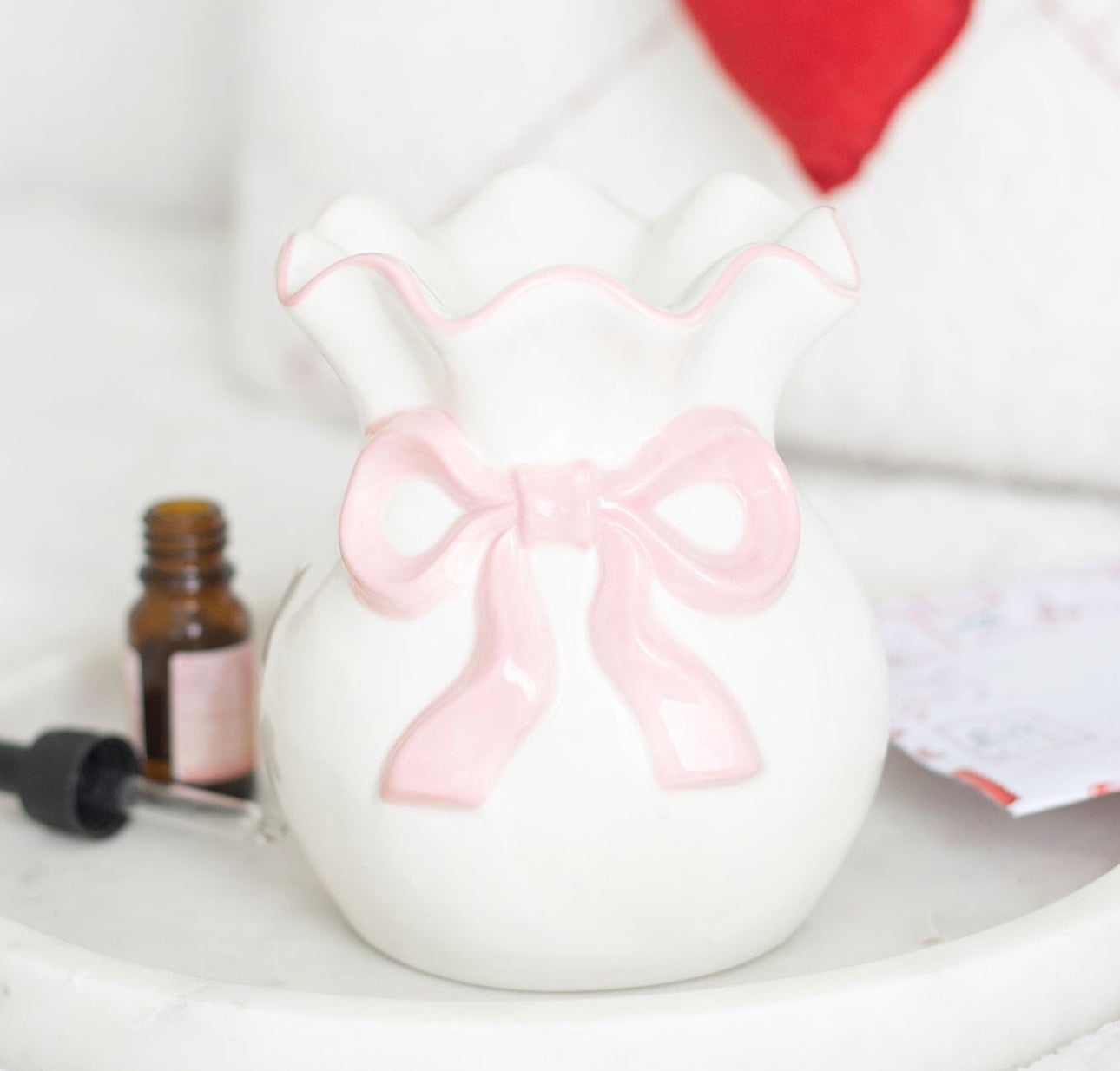 Šis mielas aliejinis degiklis žvakidės formos su švelniai rožiniu kaspinu bet kuriai erdvei suteiks koketiško stiliaus. Puikiai tinka Valentino dienai ar kasdienėms kvapų akimirkoms – tereikia įpilti praskiesto aliejaus ir uždegti arbatinę žvakutę.