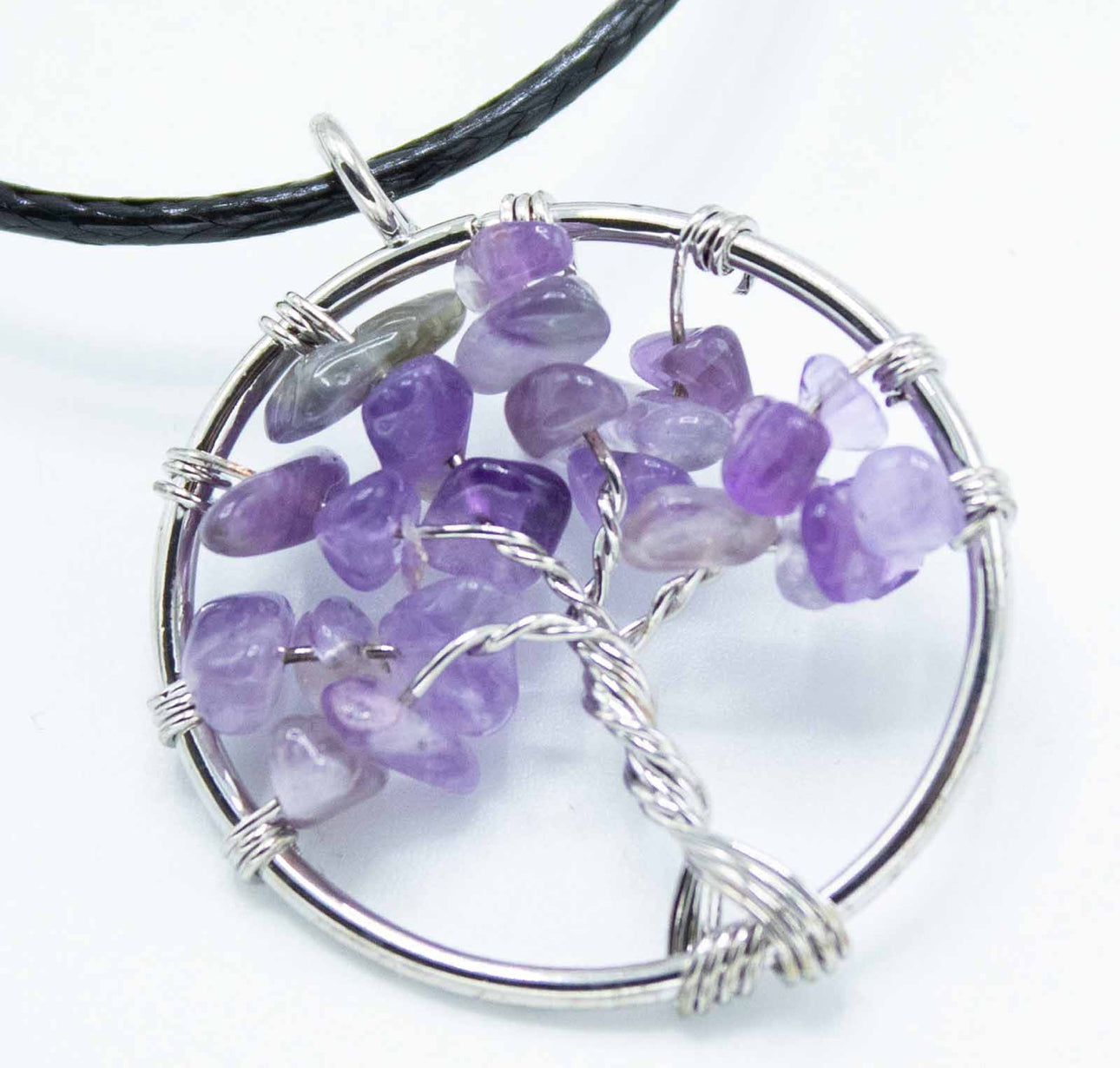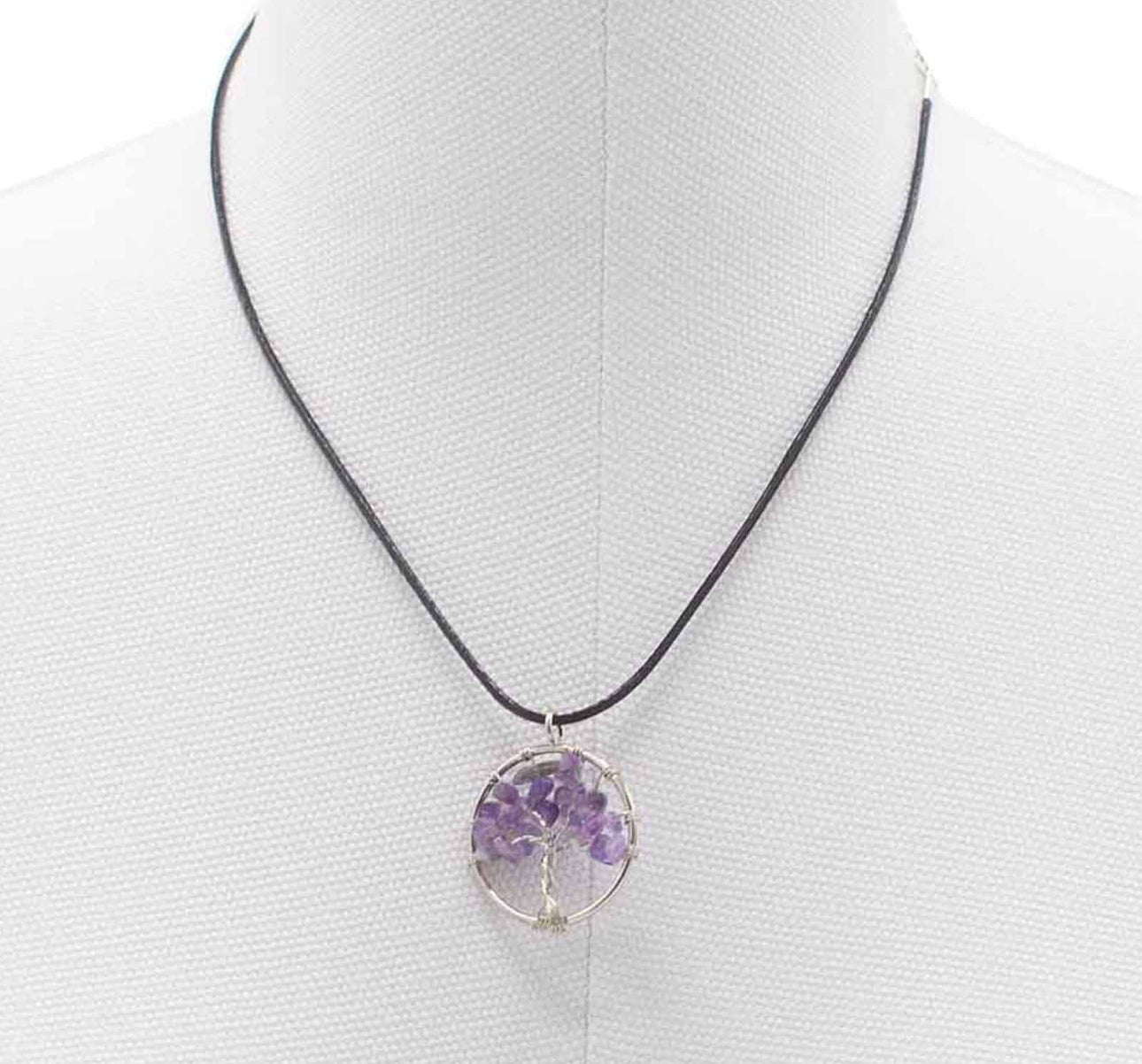 Atraskite universalią išmintį ir ramybę su šiuo kerinčiu Gyvybės Medžio pakabuku, inkrustuotu raminančiu ametistu.