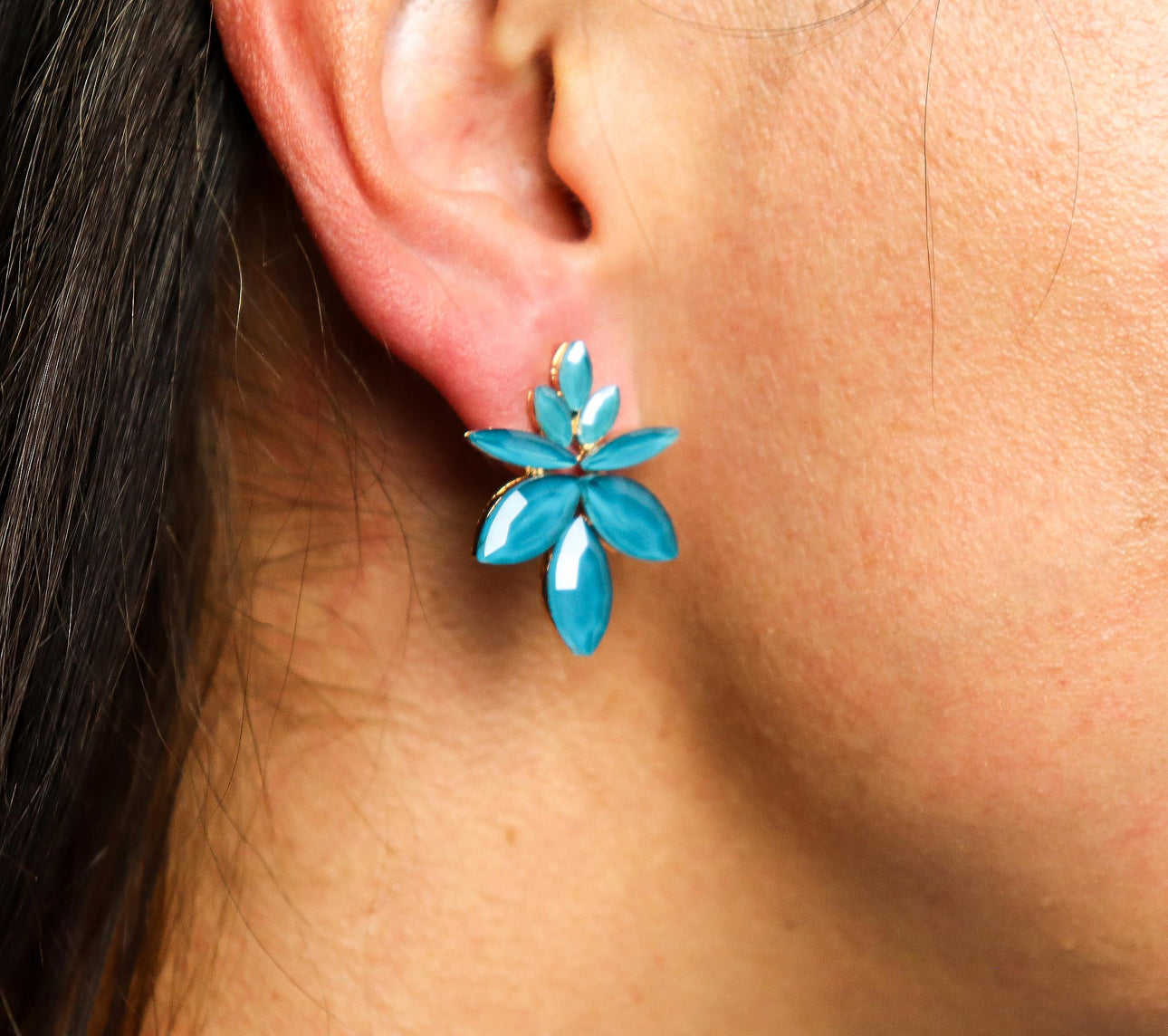 Žalsvai žali vintažinio stiklo auskarai - Gėlės