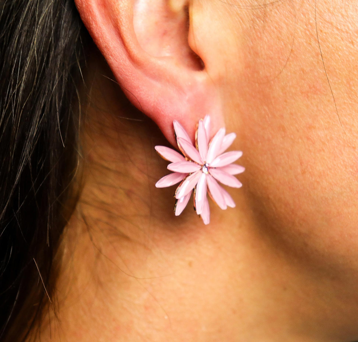 Vintažinio stiklo auskarai - Švelniai rožinės gėlės