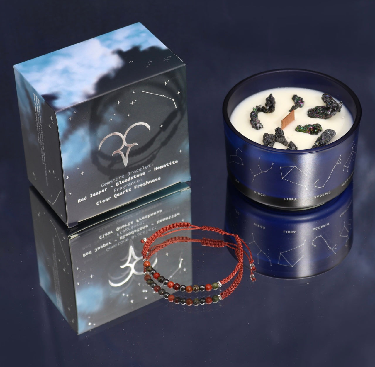 Puikiai tinka švęsti nesustabdomą Avino prigimtį – šis žvakės ir apyrankės rinkinys yra prasminga dovana arba asmeninis įgalinimo ritualas.