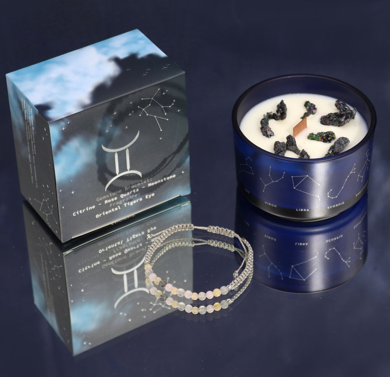 ✨ Dvynių Zodiako Krištolo Žvakė su Kristalų Apyranke ♊