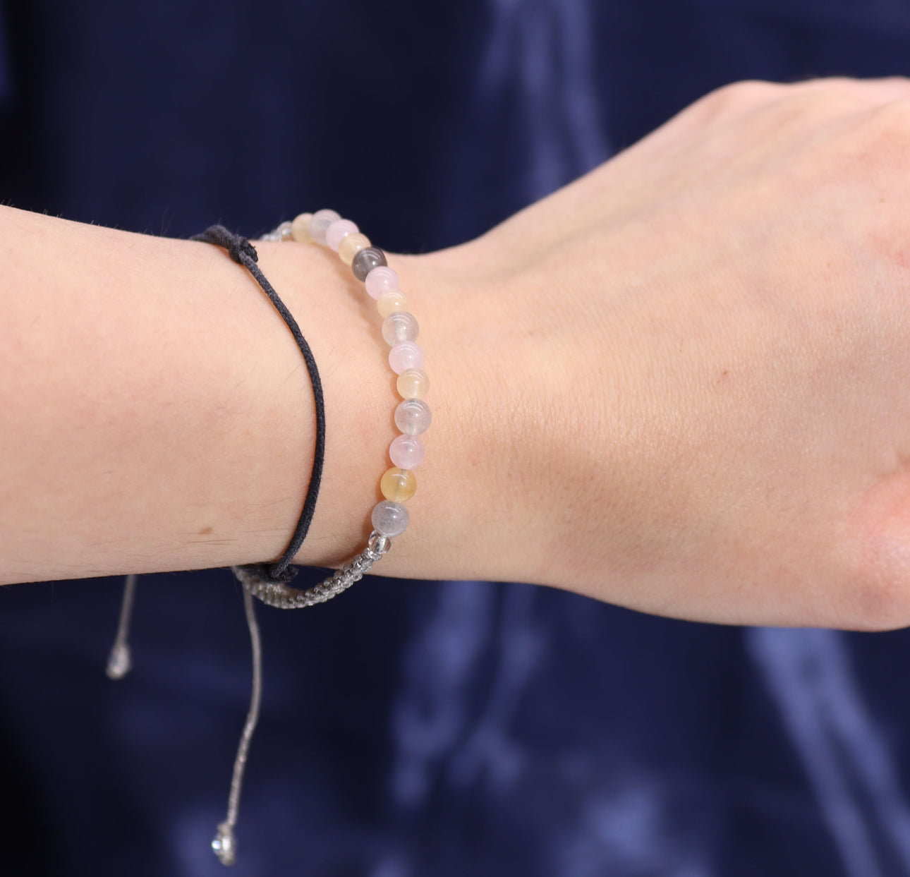 Į rinkinį įeina nuostabi kristalų apyrankė, pagaminta iš citrino, rožinio kvarco ir mėnulio akmens, parinkta atsižvelgiant į Dvynių universalias savybes: