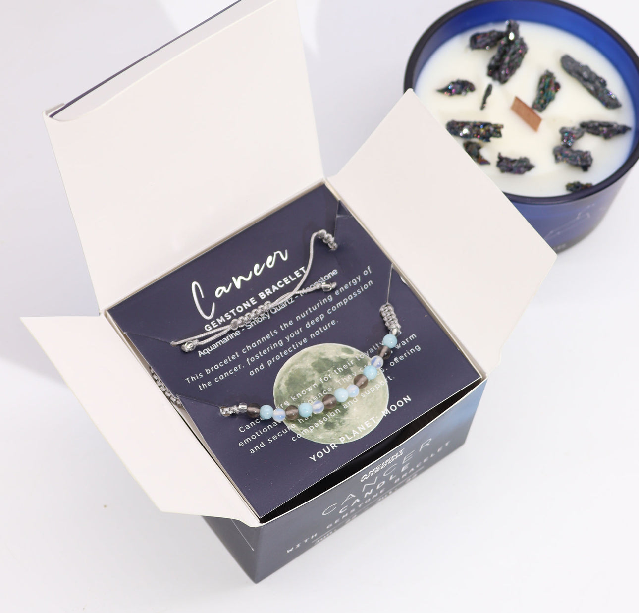 ✨ Vėžio Zodiako Krištolo Žvakė su Kristalų Apyranke ♋