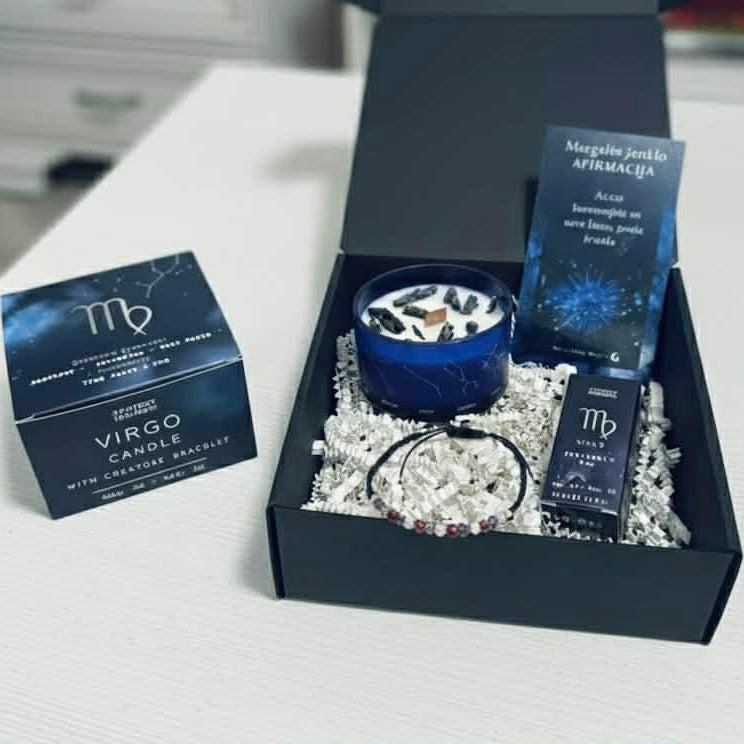 Šis magiškas rinkinys idealiai tinka savęs priežiūrai, meditacijai arba kaip prasminga dovana Mergelei. Įneškite Mergelės praktikos ir tobulumo energiją į savo erdvę.