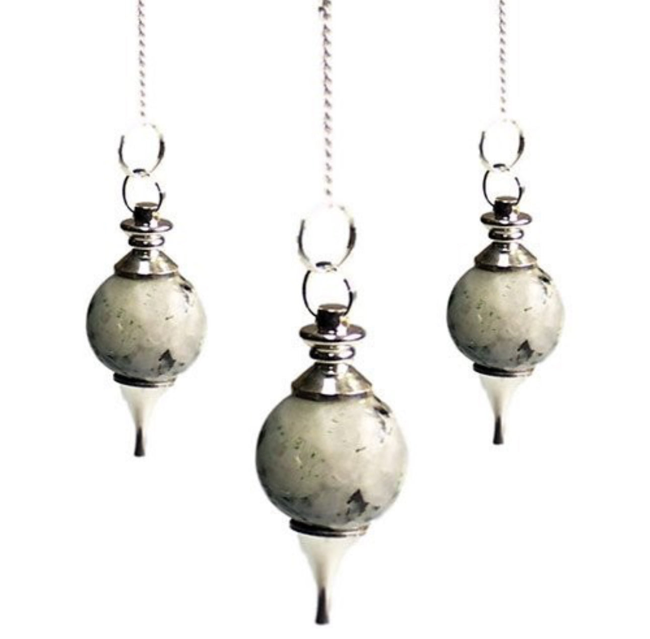 Sferos švytuoklė - vaivorykštinis mėnulio akmuo