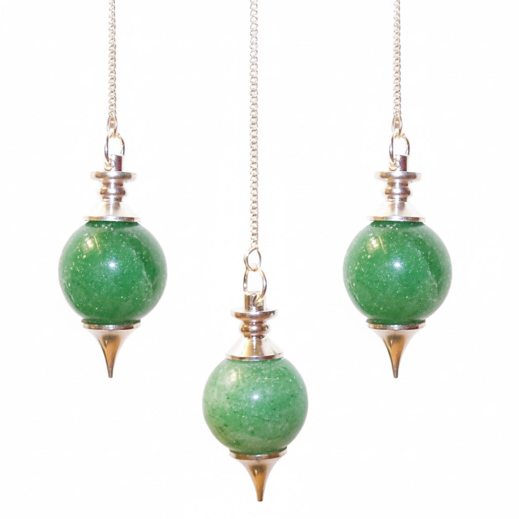 Atraskite senovinę būrimo meną su šia gaivią energiją spinduliuojančia sferine švytuokle, pagaminta iš nuostabaus Žaliojo avantiurino akmens. Papuošta elegantiška sidabruota grandinėle ir kristalo karoliuku viršutiniame gale, ši švytuoklė yra puikus įrankis dvasinei praktikai ir sėkmės pritraukimui.