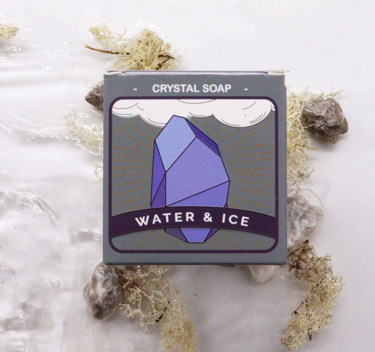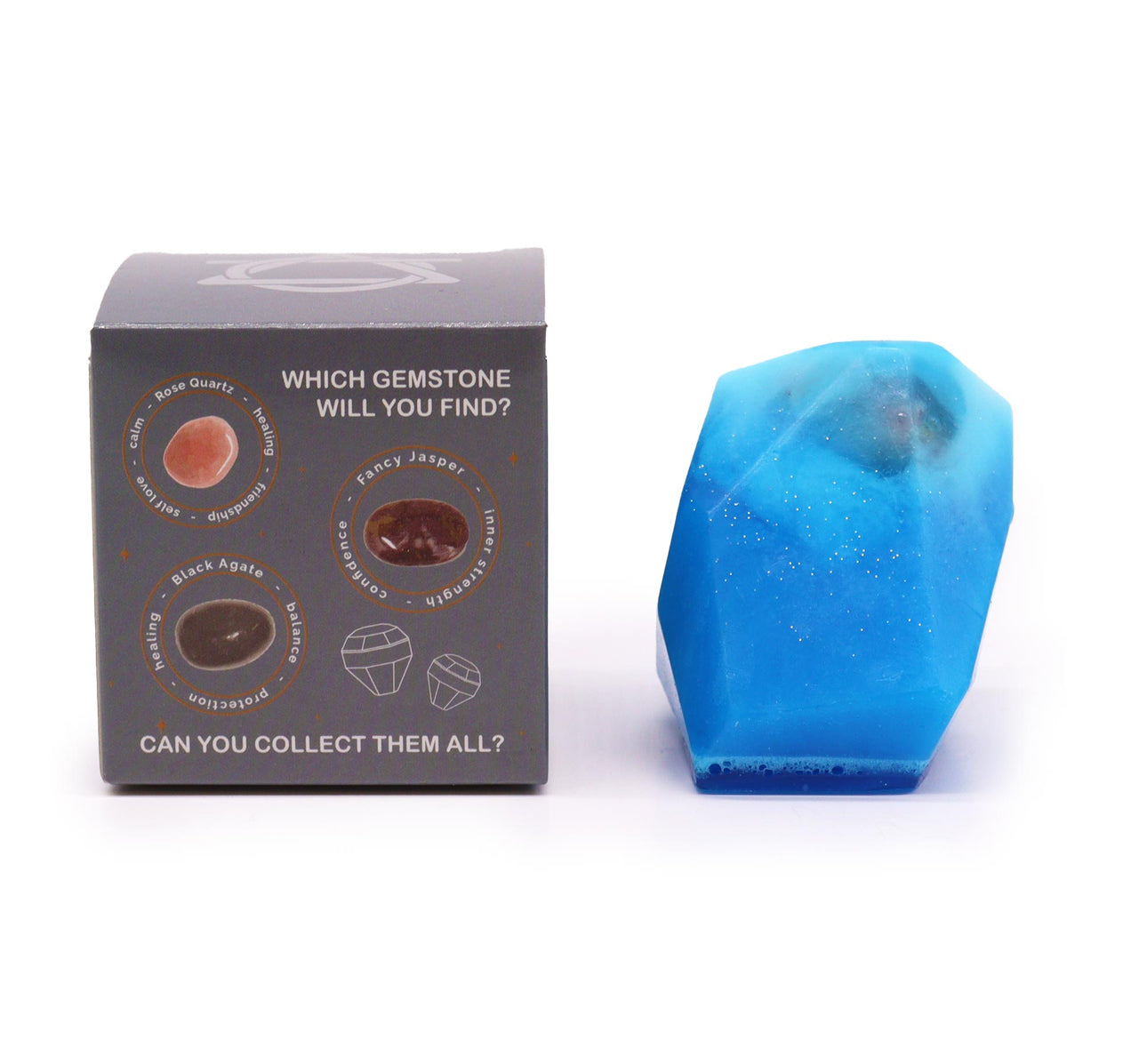 Muilas su kristalu– Vanduo – tai kelionė per vandens elementų esmę. Ramūs mėlyni atspalviai ir akmens formos muilas yra vizualiai patrauklus.