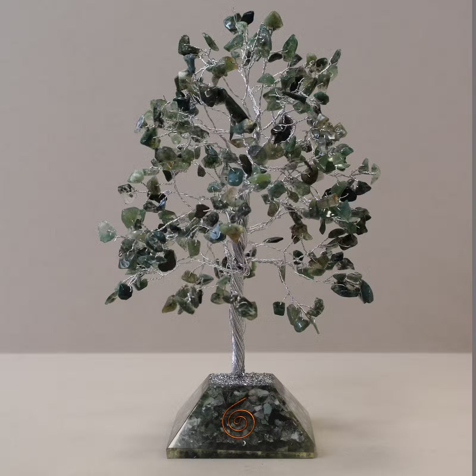 Dviguba galia: Šis medis, pagamintas iš 320 tikrų Samanų Agato kristalų, yra pritvirtintas ant piramidės formos orgonito pagrindo. Pagrindas užpildytas tais pačiais natūraliais kristalais, sustiprinančiais bendrą energiją.