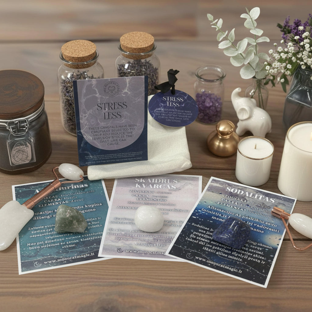 Atraskite vidinę ramybę ir lengvumą su šiuo kruopščiai atrinktu trijų kristalų rinkiniu, skirtu sumažinti kasdienio gyvenimo sukeltą stresą. Šis rinkinys yra jūsų asmeninis palaikymo ir harmonijos šaltinis. Puikiai tinka tiek sau, tiek kaip prasminga dovana.