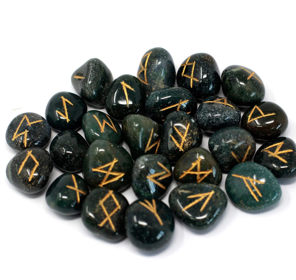 Runų akmenų rinkinys su kraujo akmeniu (Heliotropas)