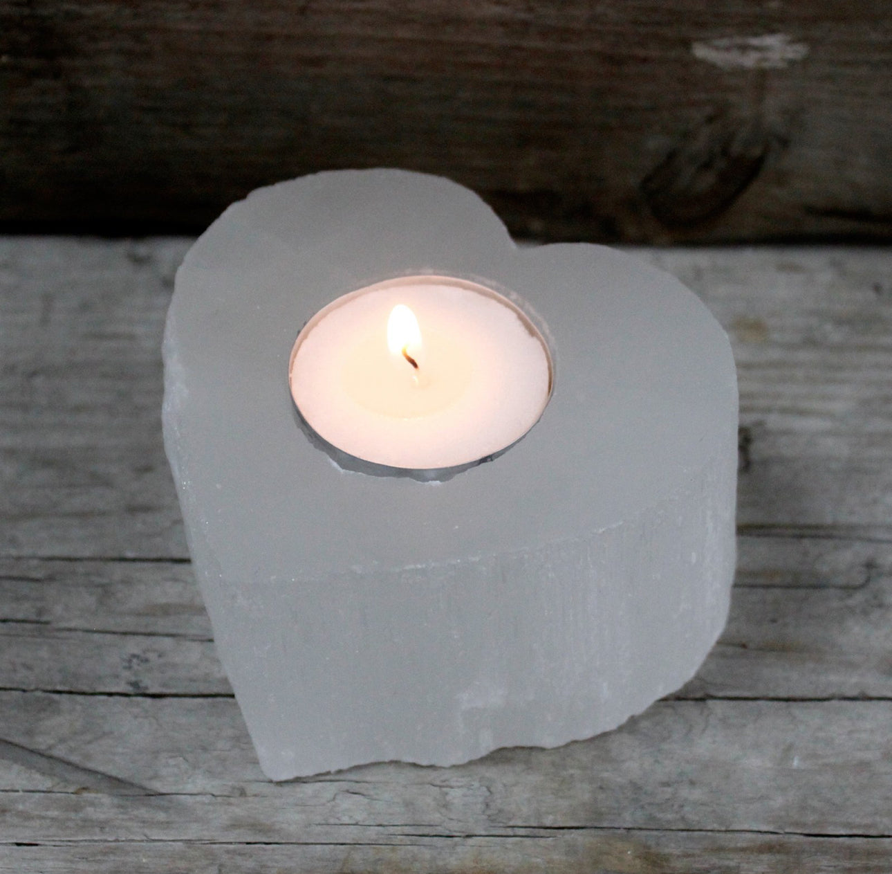 Graži selenito žvakidė širdies forma – sujungia selenito galią su širdies simbolika ir žvakės šviesa. Sukuria meilę, ramybę ir dvasinę harmoniją.